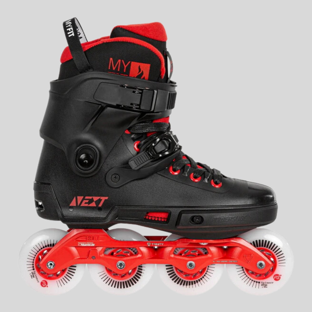 The POWERSLIDE NEXT Black Red 80 is a high-performance urban inline skate designed for speed, durability, and customization. Built on the robust NEXT hard boot, it’s engineered for precise control and intense urban skating. Featuring a customizable cuff with adjustable height and forward flex, it ensures a perfect fit tailored to your skating style. The heat-mouldable MYFIT Recall Dual Fit liner provides exceptional comfort, cushioning, and vibration dampening. Equipped with the TRINITY 3-point mounting system and light Elite cast aluminium frames, these skates offer a low centre of gravity for unbeatable stability. Complete with 4x80mm Spinner wheels and WICKED ABEC 9 bearings, the NEXT Black Red 80 delivers a fast, smooth, and thrilling ride.