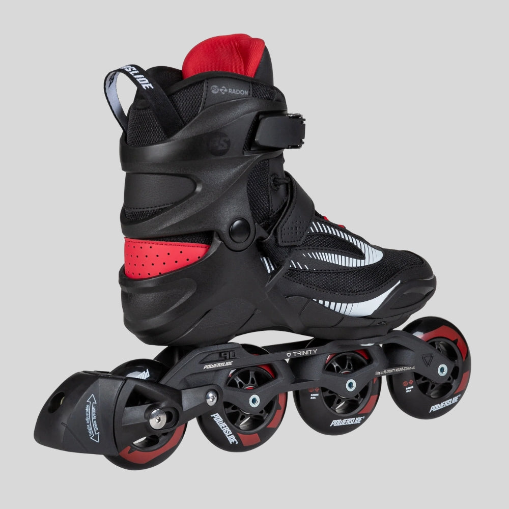 Powerslide Phuzion Radon Charcoal 84 inline skates are designed for skaters who want comfort, control, and performance for fitness skating and intense workouts. Featuring a supportive glass-fibre-reinforced cuff and breathable nylon mesh softboot, the Radon hugs the foot while providing excellent stability on longer sessions. The TRINITY X 3-point mounting system lowers your centre of gravity for improved balance and allows frame adjustment to suit your skating style. Built on a Powerslide Elite cast aluminium frame with 4x84mm Phuzion wheels and Wicked ABEC 7 bearings, these skates deliver a smooth, controlled ride. Complete with the Height Adjustable Brake System, the Radon Charcoal 84 is perfect for recreational cruising or faster fitness sessions.