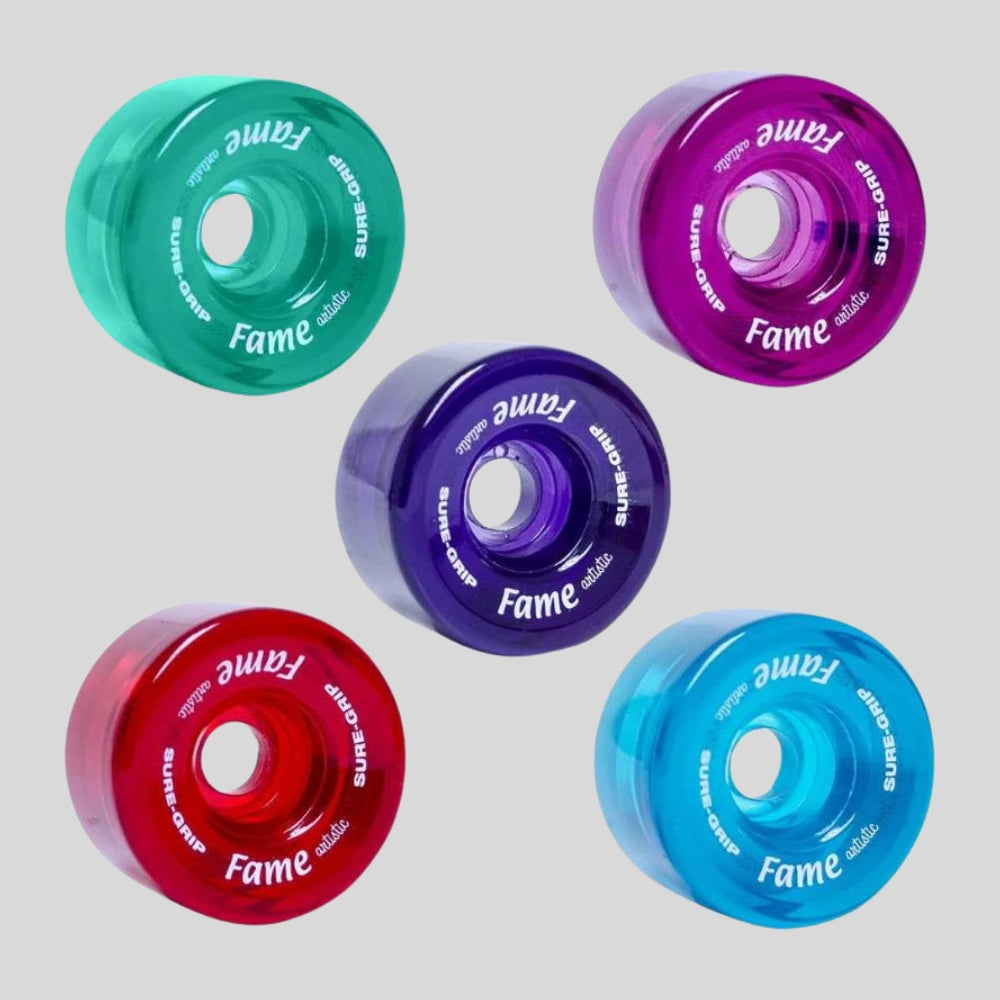 Introducing Suregrip Fame Wheels—a perfect choice for budding artistic skaters. Constructed from durable urethane, these wheels offer superior grip compared to traditional clay counterparts, providing stability and control essential for beginners. With a diameter of 57mm and a hardness rating of 95a, they strike a balance between manoeuvrability and stability, facilitating smooth movements on the rink. Sold in convenient packs of eight, Suregrip Fame Wheels offer great value for novice skaters looking to equip their skates with reliable and performance-driven wheels. Step confidently onto the rink and begin your artistic skating journey with Suregrip Fame Wheels, ensuring you're set for success from the start.