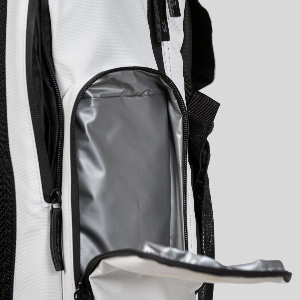 Designed by world champion Bart Swings, the Powerslide Wings Backpack combines style, function, and comfort in a compact 27L design. Made from tear-resistant, PU-coated nylon, it features front skate holders, insulated side pockets for snacks or drinks, and a ventilated structure to keep gear fresh. An internal organiser and padded shoulder straps make it ideal for skaters commuting or heading to training. With premium finishes and a smart layout, the Wings Backpack is a sleek, reliable choice for inline skaters who want high performance on the move.